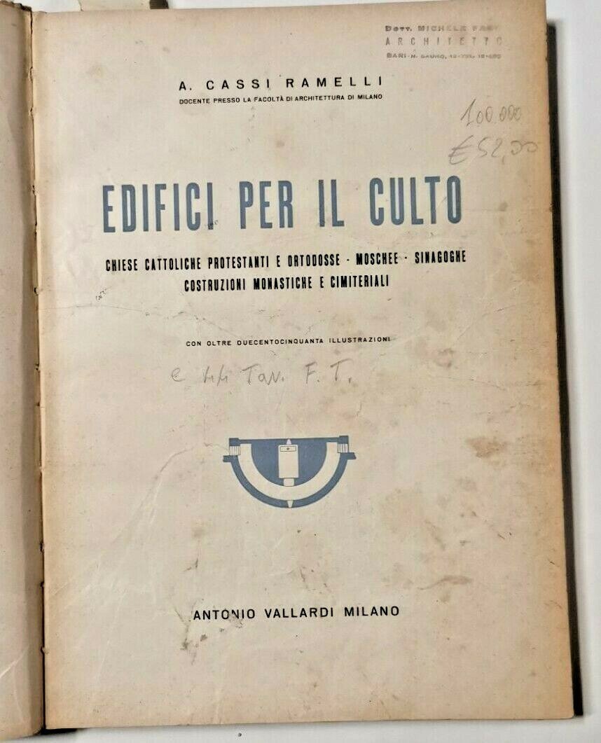 EDIFICI PER IL CULTO di Cassi Ramelli 1946 Vallardi libro architettura chiese