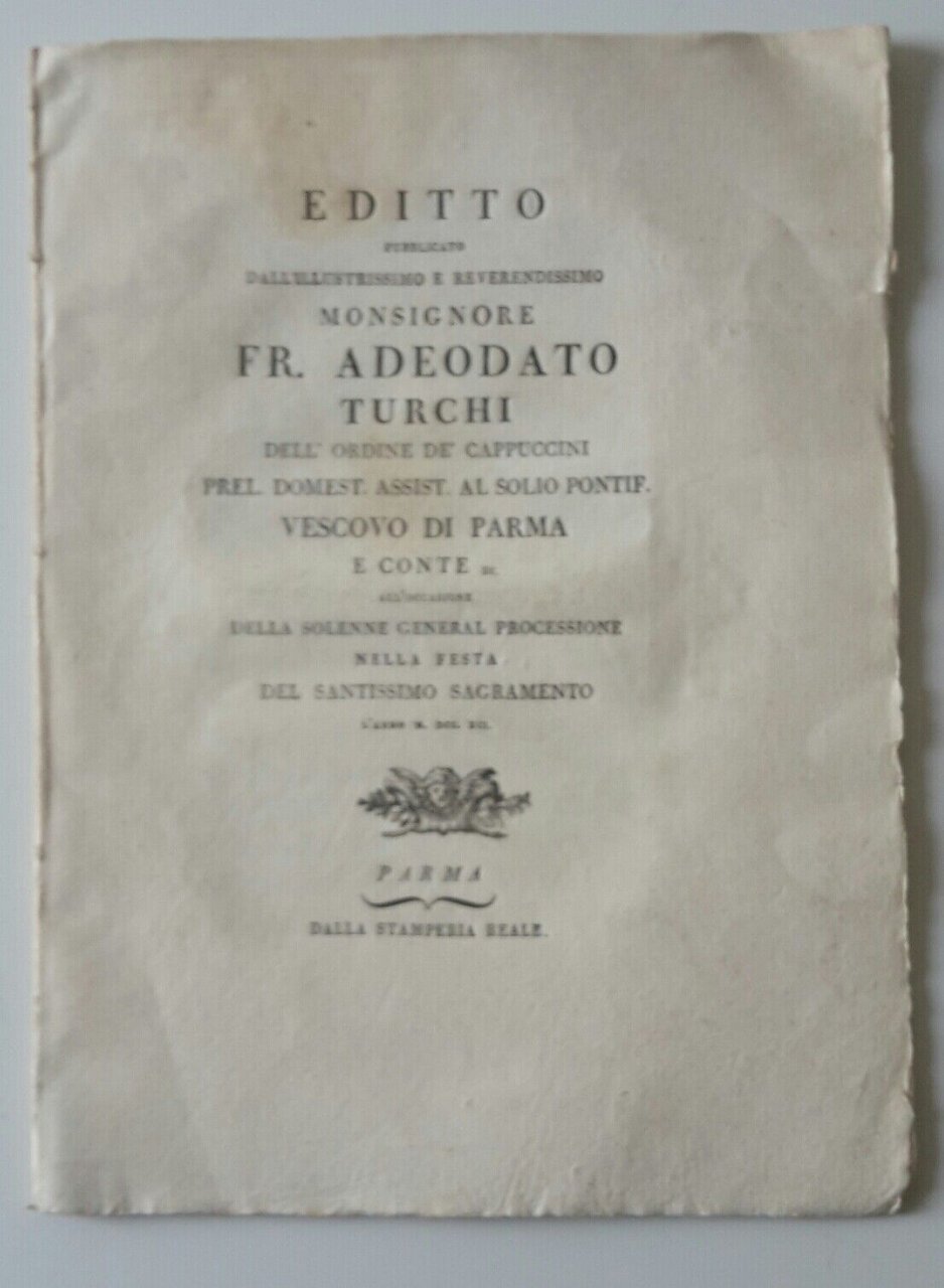 EDITTO DI MONS. ADEODATO TURCHI PARMA DALLA STAMPERIA REALE 1791