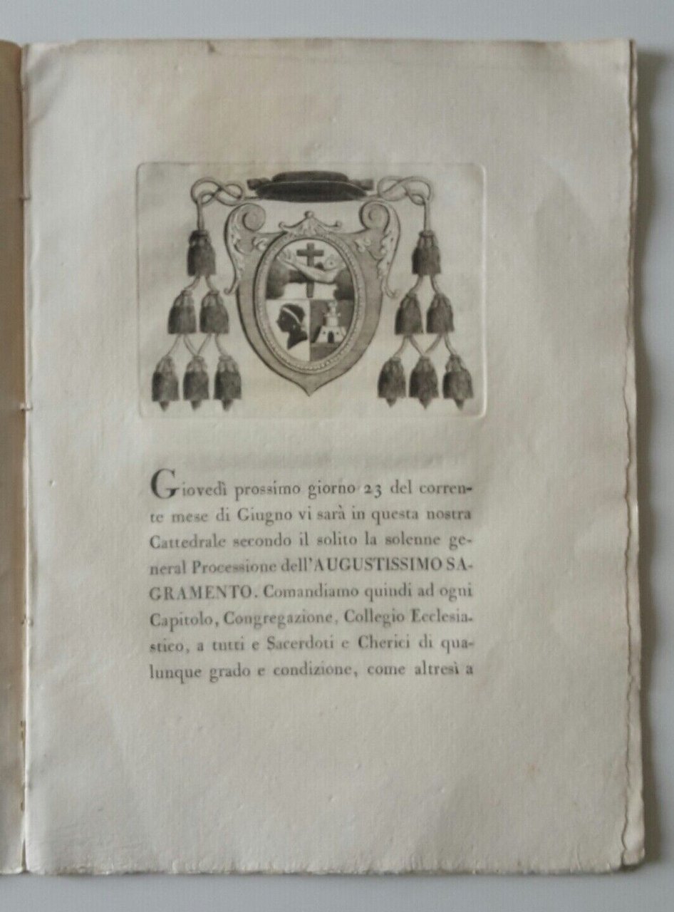 EDITTO PUBBLICATO DALL'ILLUSTRISSIMO E REVERENDISSIMO MONS. ADEODATO TURCHI ..... ALL'OCCASIONE DELLA SOLENNE GENERAL PROCESSIONE NELLA FESTA DEL SANTISSIMO SACRAMENTO