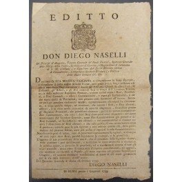 Editto Don Diego Naselli. Sequestro dei beni presi illegalmente durante la Repubblica Romana