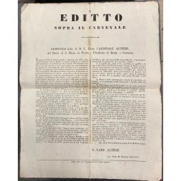 Editto. Sopra il carnevale. In occasione della festività vengono emesse delle regole per il buon funzionamento delle manifestazioni