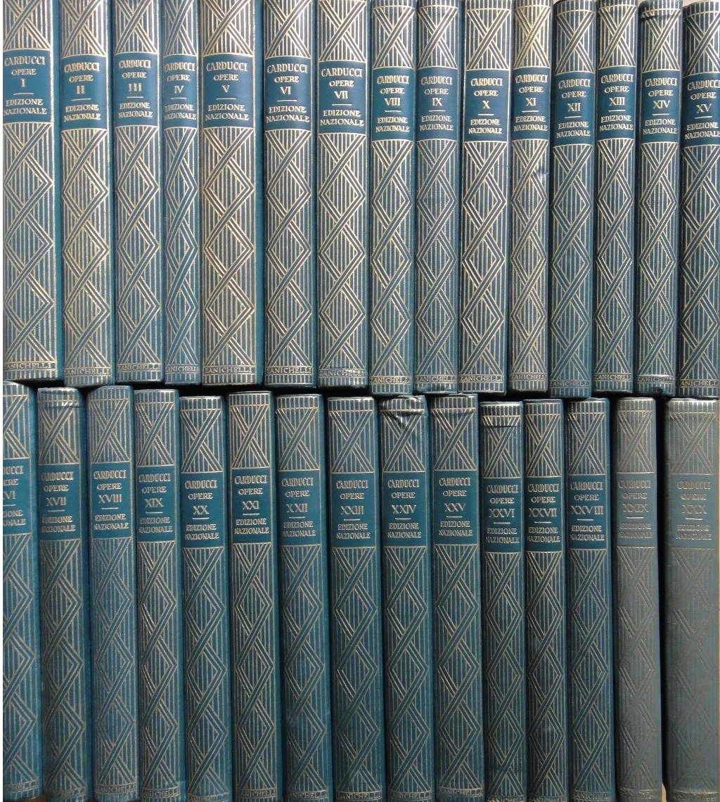 In-8 (cm. 21), 30 volumi, tela editoriale verde, ciascun volume con tavola in antiporta e tavole di fac-simili.E' questa la raccolta completa di tutte le opere del poeta, premio Nobel della letteratura nel 1906.In ottimo stato (nice copy).