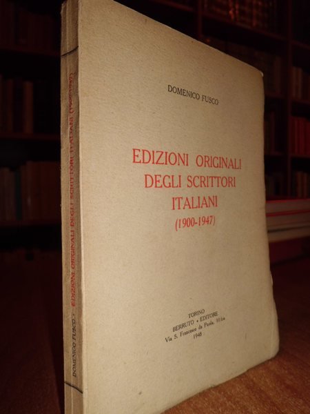 Domenico, Fusco. Torino, Berruto Editore, 1948. In - 16°, br. orig. 182, (1) pp. Originale. Libro molto ben conservato. Zona lett. mod.