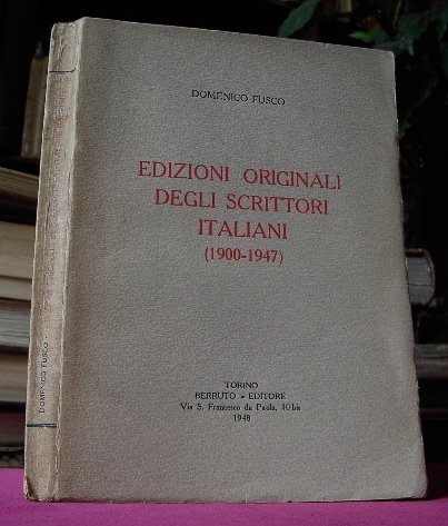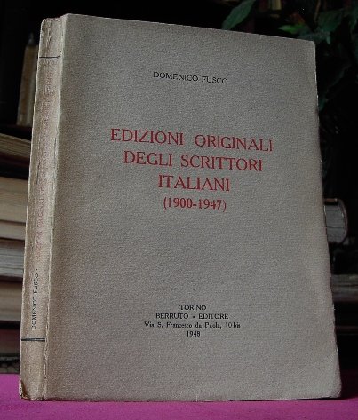 Volume in 8 piccolo, brossura editoriale, titolo al piatto ed al dorso, sguardie, frontespizio, 182 pp. Sunto bibliografico degli scrittori italiani editati nella prima met del XX secolo riuniti in ordine alfabetico e riportante le opere per anno d'edizione. Al frontespizio, a matita, la mano dell'antico possessore ha scritto 'Pieno di errori e di deficienze'. Ma comunque opera utile, non comune. In stato perfetto.