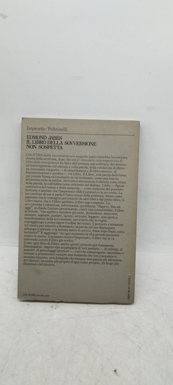 edmond jabes edmond jamess il libro della sovversione non sospetta. , feltrinelli 1984 italiano, 108 °°