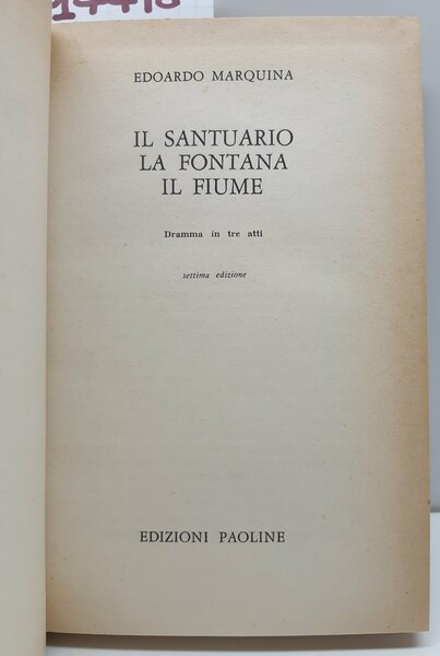 Edoardo Marquina Il Santuario La Fontana Il fiume 7° ed. Paoline 1963
