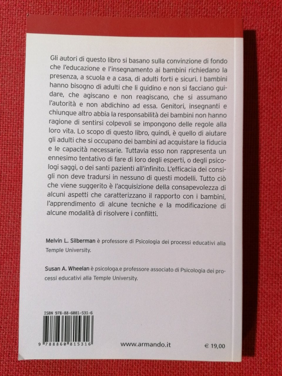 Armando editore, 2009 OTTIME condizioni generali 1G-5-11 Un libro che vuole aiutare gli adulti che si occupano dei bambini ad acquistare la fiducia e le capacità necessarie. Gli Autori partono dall'assunto che l'educazione e l'insegnamento ai bambini richiedono la presenza di adulti forti e sicuri. I bambini hanno bisogno di persone che li guidino e non si facciano guidare, che agiscano e non reagiscano. Questo volume non vuole essere un tentativo di trasformare i lettori in tecnici, ma solo suggerire loro come acquisire la consapevolezza di alcuni aspetti che caratterizzano il rapporto con i bambini, l'apprendimento di alcune tecniche e il modo migliore per risolvere alcuni problemi.