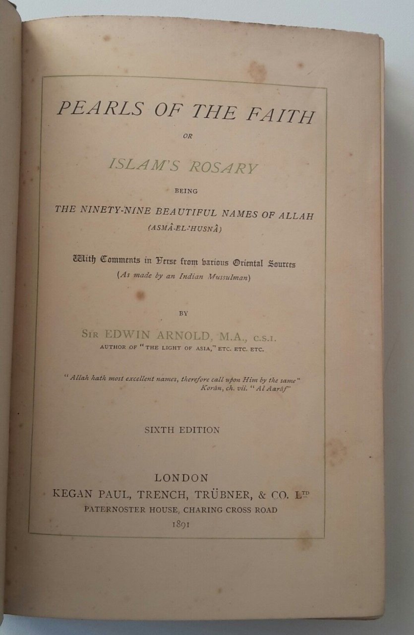EDWIN ARNOLD PEARLS OF THE FAITH OR ISLAM ROSARY KEGAN TRENCH TRUBNER 1891