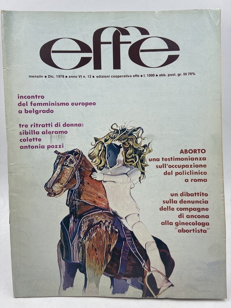 EFFE, MENSILE FEMMINISTA AUTOGESTITO. Anno VI N. 12 dicembre 1978.