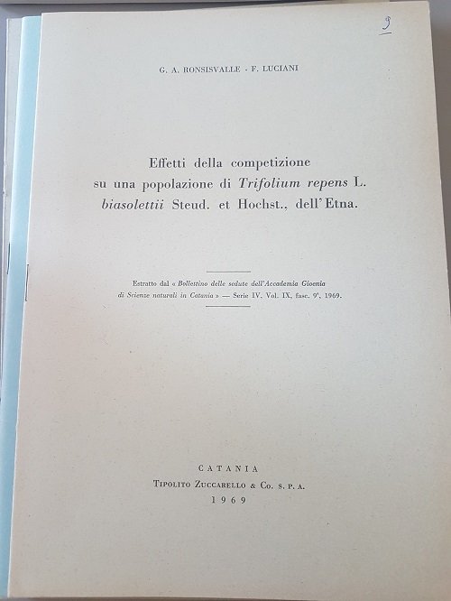 EFFETTI DELLA COMPETIZIONE SU UNA POPOLAZIONE DI TRIFOLIUM REPENS L.BIASOLETTI STEUD ET HOSCHST DELL'ETNA