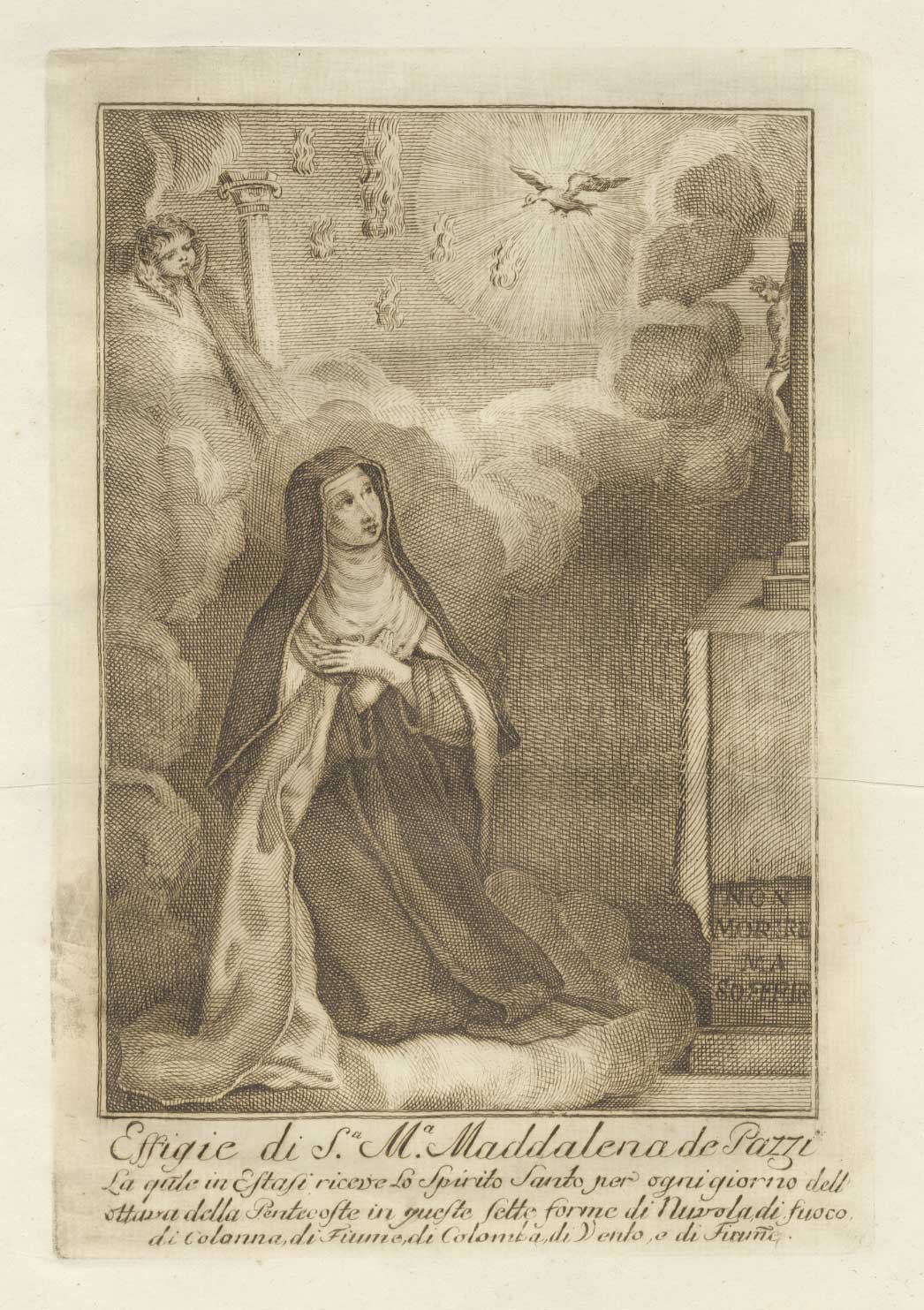 EFFIGIE di S.M.a Maddalena de' Pazzi la quale in estasi riceve lo Spirito Santo per ogni giorno dell'ottava della Pentecoste in queste sette forme di Nuvola di Fuoco di Colonna, di Fiume, di Colomba, di Vento [.].