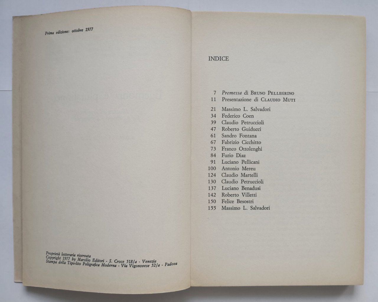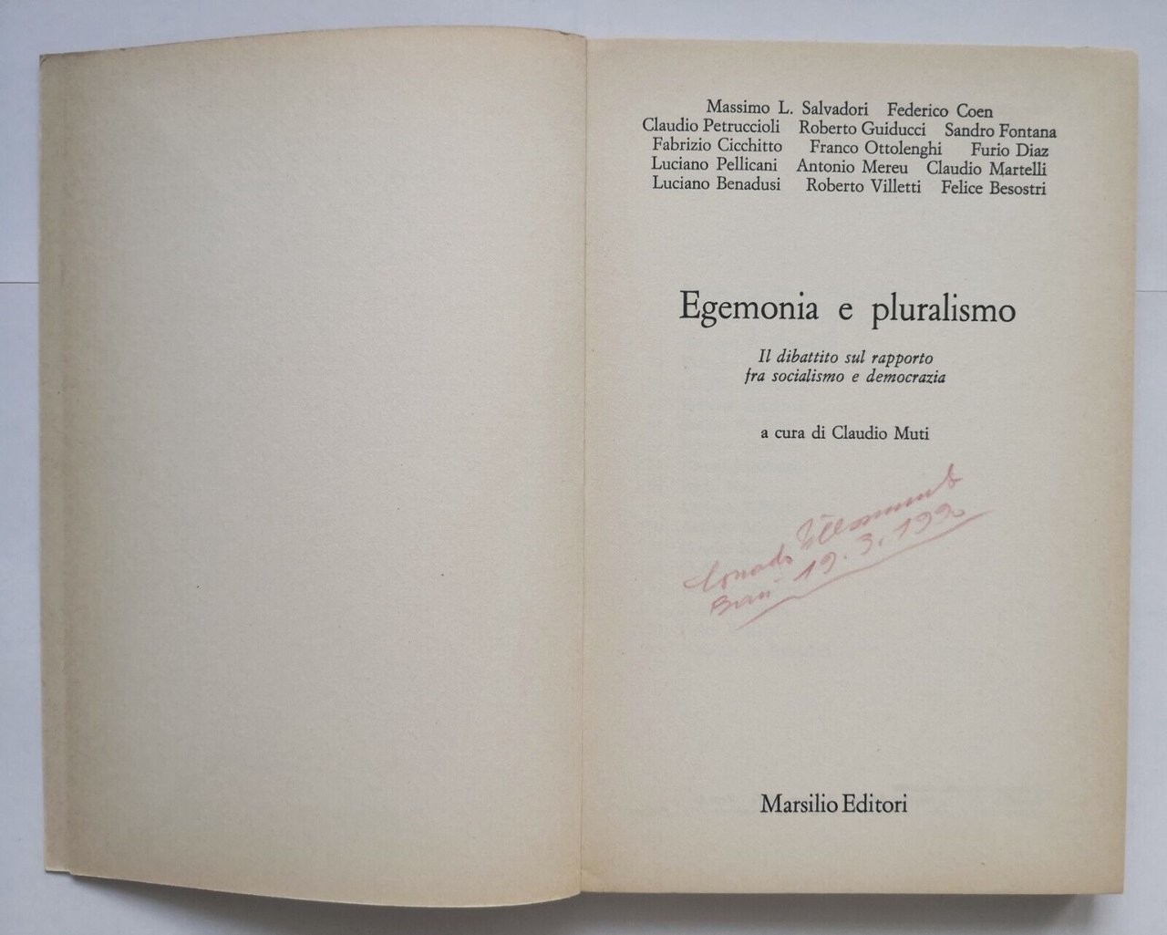 EGEMONIA E PLURALISMO di Claudio Muti 1977 Marsilio Libro socialismo democrazia