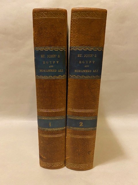 Opera in edizione originale in due volumi con legature mezza pelle coeva, dorso con doppio tassello in pelle bleu, titoli e fregi in oro, tagli colorati, ottime condizioni. Due graziose vignette al frontespizio di entrambe i volumi. Prima edizione di questo accurato diario di viaggio di esplorazione e studio ad opera del giornalista e viaggiatore britannico James Augustus St. John.