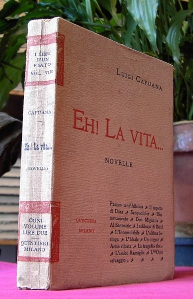 Volume in 8, brossura editoriale, titolo al piatto ed al dorso, due ritratti fotografici del'autore (tratti da articoli di giornale a cura del precedente collezionista) applicati al foglio di guardia, frontespizio, carta di dedicatoria dell'autore all' amico Michele La Spina, indice, occhiello, (8) 266 pp. Rara edizione in ottimo stato.