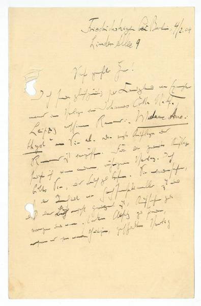 2 SS. 8vo. An einen namentlich nicht genannten Adressaten: "Ich sende gleichzeitig […] ein Exemplar meines im Verlage von Johannes Cotta Nachf., Leipzig erschienenen Roman: ‚Madame Amethyst' an Sie ab. Die erste Auflage des Romans ist vergriffen […]". - Gelocht und gefaltet. - Arthur Zapp war Verfasser eines sehr umfangreichen literarischen Werks, das vor allem aus seinerzeit vielgelesenen Romanen, Erzählungen und Theaterstücken besteht.