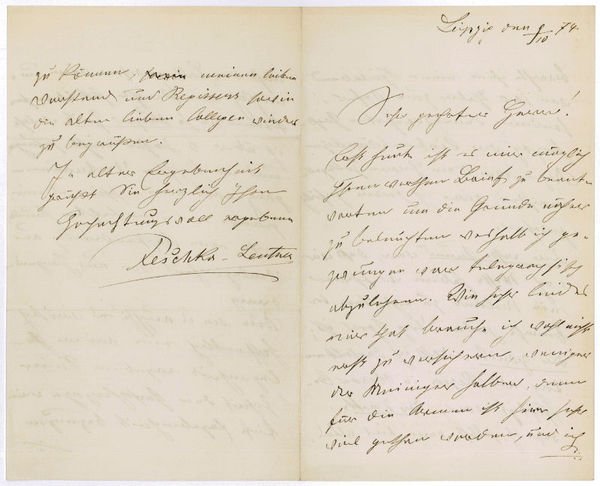 3½ SS. auf Doppelblatt. Gr.-8vo. An den Sänger Ludwig Cramolini (1804-1884) in Darmstadt: "Erst heute ist es mir möglich Ihren werthen Brief zu beantworten um die Gründe näher zu beleuchten weshalb ich gezwungen war telegraphisch abzulehnen. Wie sehr leid mirs that brauche ich wohl nicht erst zu versichern, weniger der Meinigen halber, denn für die Armen ist hier sehr viel gethan worden, und ich brachte ihnen meinen Spielabend von 100 Thalern zum Opfer, sondern dem verehrten Großherzog, u. der liebenswürdigen Regie, wie dem Herrn Hofkapellmeister wäre ich gerne gefällig gewesen. Der erste Grund war, daß wir noch Messe haben wo schwer ein Urlaub zu erhalten da beinahe jeden Tag Oper ist; der zweite, daß ich denselben Tag als Rezia in Oberon beschäftigt war; der dritte, daß ich, selbst wenn dies alles nicht der Fall gewesen wäre, unmöglich eine Parthie hätte übernehmen können, in so kurzer Zeit, welche ich über 6 Jahre nicht gesungen und im höchsten Vertrauen [.] schien es mir, gerade aus dem letzten Grunde, mehr eine Aufforderung aus Verlegenheit wie aus Herzensdrang [.]". - Die Sängerin wurde 1865 am Hoftheater in Darmstadt engagiert, studierte hier bei Bockholtz-Falconi den Koloraturgesang und wurde 1868 an das Opernhaus in Leipzig berufen.