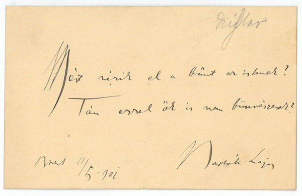 1 S. Qu.-8vo. Zitat in ungarischer Sprache. - Bartok war als Redakteur des Witzblattes "Bolond Istók" ("Der närrische Steffel") in Budapest tätig.