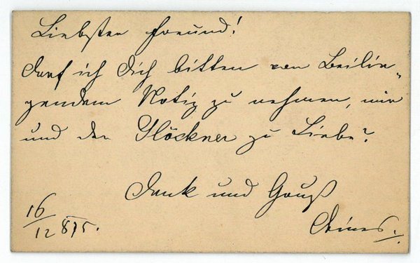 62:101 mm. An einen namentlich nicht genannten Adressaten: "darf ich dich bitten von Beiliegendem Notiz zu nehmen, mir und dem Glöckner zu Liebe? […]". - Der Sohn eines Schneidermeisters trat als Volkssänger auf und schloß sich 1852 einer Wanderbühne an, die in verschiedenen österr. Städten gastierte. Nach seiner Rückkehr nach Wien wurde Matras Mitglied der Moserschen Volkssängergesellschaft und trat 1858-62 in der Singspielhalle seines Partners Johann Fürst auf, mit dem er große Erfolge feierte. 1862 wurde er an das Carltheater verpflichtet und spielte hier bis 1879 als Publikumsliebling in Volksstücken, Possen und Operetten.