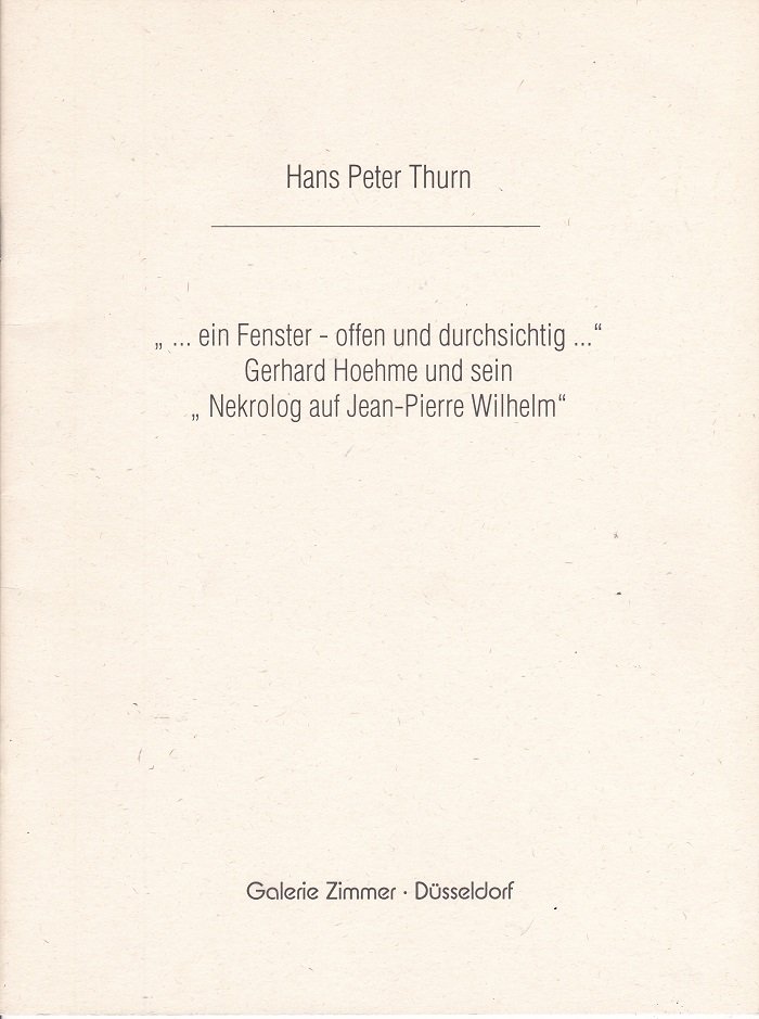 Vortrag von H. P. Thurn anlässlich der Ausstellung in der Galerie Zimmer in Düsseldorf, 9.September bis 20.Novmber 1995. Mit 7 sw Abbildungen.