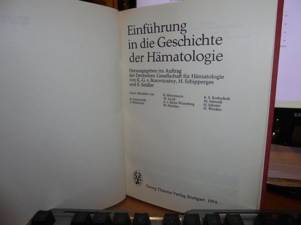 Von K.-G. v. BOROVICZENY. Stuttgart, Georg Thieme, 1974. Einfühlung in die geschichte der Hämatologie. In-8°, tela rossa con titolo in oro entro tassello al dorso. xi, 210 pp. Come nuovo. Uff. C - IV - 3
