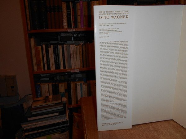 Einige Skizzen, Projekte und ausgeführte Bauwerke von Otto Wagner. Vollständiger Nachdruck der vier Originalbände von 1889, 1897, 1906, 1922. In-folio, tela edit. con titolo in oro al dorso, sovracopertina. 428 pp. con numerose illustrazioni/disegni a colori e in bianco e nero n.t. Come nuovo. Uff. stanzetta mob. sinistra II - 3 carc.
