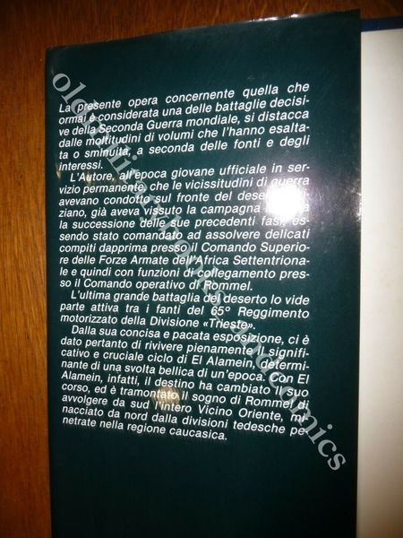 DESCRIZIONE: Ciarrapico Ed. Roma 1991, br. ed. similpelle con sovracc. ill. col. con alette, pp. 273, 37 foto e 11 cartine a colori di cui 3 in grande formato a doppia pagina in 8°. Volume che descrive dettagliatamente la battaglia di El Alamein. L'autore svolse delicati compiti prima presso il Comando Superiore delle F.A. in A.S. poi con funzioni di collegamento presso il comando di Rommel. CONDIZIONI: Ottime/Perfette PESO / WEIGHT: 1363 gr. without package
