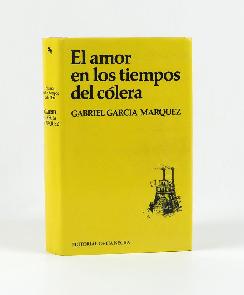 - legatura editoriale in tela gialla cerata con sovracoperta gialla stampata in nero (bella elaborazione grafica con ritratto dell’autore in quarta di copertina; grafica Procesos Creativos y Gonzalo Garcia Barcha),