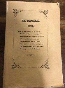 Interessante non comune edizione originale di questo opuscolo in versi, scritto in dialetto veneziano, con tema il baccalà, le sue virtù e i modi di cucinarlo. Pagg. 30 circa, mis. 215x145, bross. edit. Piccolo strappo all'attaccatura del piatto ant., per il resto ottimo
