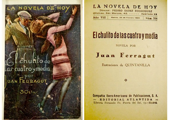 Madrid, La Novela de Hoy, 1929. 8vo.; 58 pp., ilustraciones de Quintanilla. Cubiertas originales.