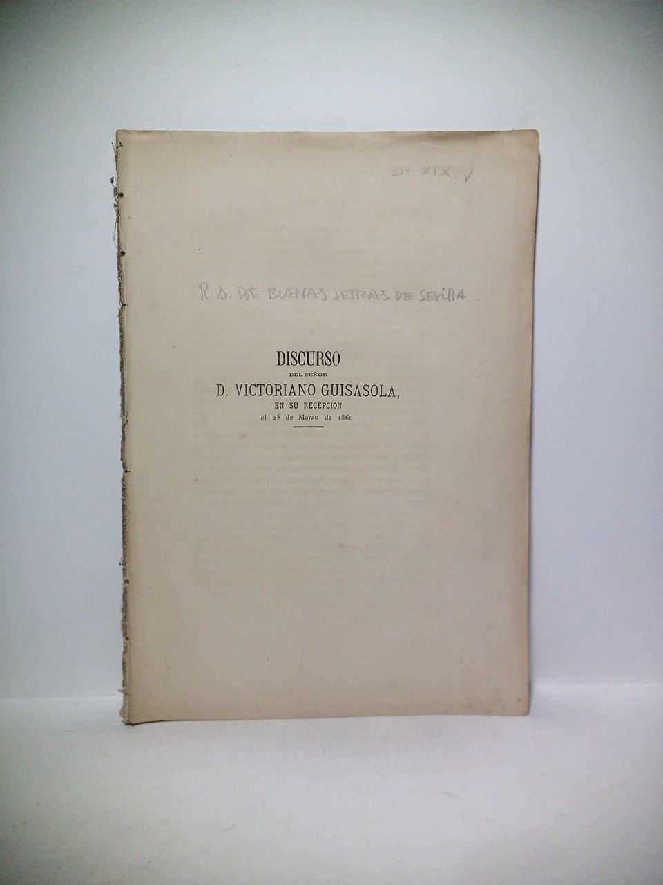 [S.l., Sevilla?]: R. A. de Buenas Letras, [1860].- P. 149-111 (en total 39 pags.); 4º mayor (25,4 x 17,3 cm); Cubiertas provisionales.* Por carecer de cubiertas, se le han puesto unas de papel para su mejor conservación. HISTORIA DE LA IGLESIA CATÓLICA, PATRÍSTICA Y PENSAMIENTO CATÓLICO EN GENERAL