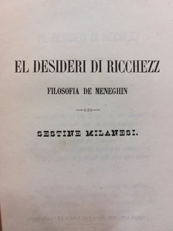 El desideri di ricchezz. Filosofia de Meneghin. Sestine milanesi.