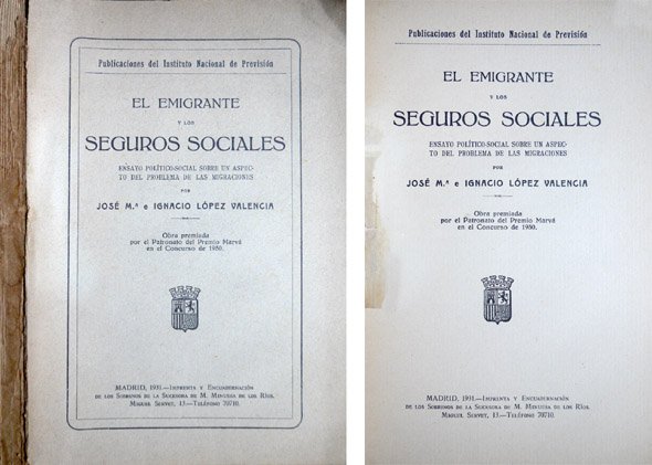 El Emigrante y los Seguros Sociales. Ensayo político-social sobre un aspecto del problema de las migraciones.
