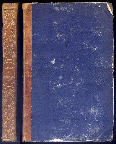 Madrid, Biblioteca Ilustrada de Gaspar y Roig, Editores, 1852. 4to. mayor; 292 pp. de texto y 44 mapas dobles grabados en acero por Ramón Alabern, (de 46, faltando los correspondientes a Cuba y Chile - Perú). Encuadernación en media piel, de la época.