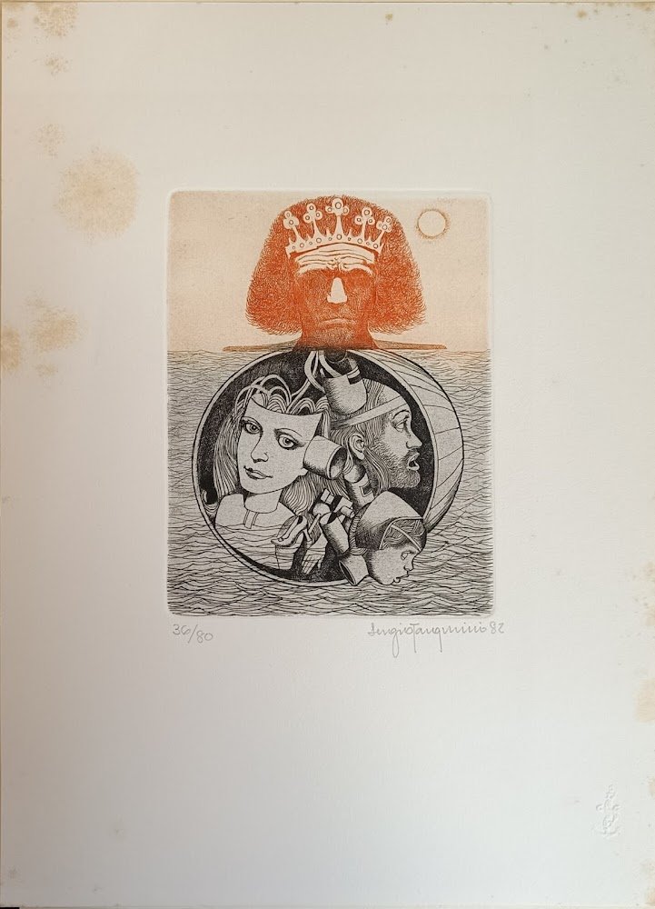 Presentazione di G. Sarpello. Tiratura 36/80. acquaforte e acquatinta inciso cm. 12,2 x 15,9 - foglio cm. 33,5 x 24,5 cartellina Buono (Good) Buon es. ma con segni del tempo.