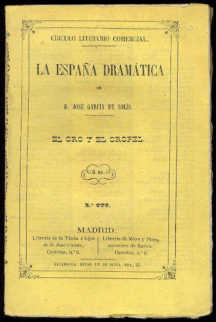 2ª Ed.?.- Salamanca: Círculo Literario Comercial (Est. Tipográfico de Oliva), 1863.- 94 p.; 4º (20,6 cm.).- Círculo Literario Comercial. La España Dramática. 122).* Mínimas motitas de óxido en algunas hojas. TEATRO ESPAÑOL DE LOS SIGLOS XIX-XXI