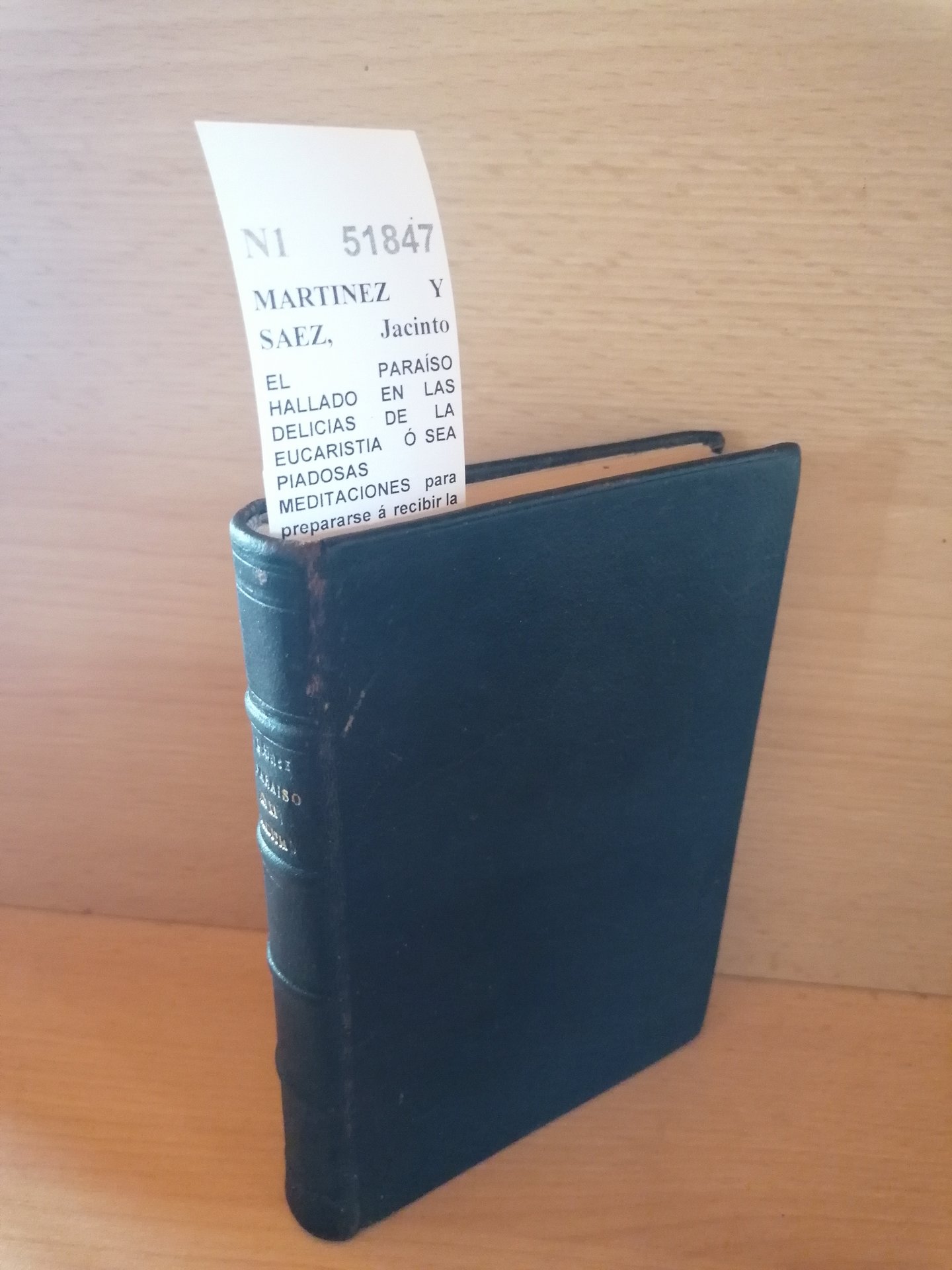 MARTINEZ Y SAEZ, Jacinto María EL PARAÍSO HALLADO EN LAS DELICIAS DE LA EUCARISTIA Ó SEA PIADOSAS MEDITACIONES para prepararse á recibir la Santa Comunión y dar gracias después de ella, tomadas de la Sagrada Escritura y de los escritos de los Padres de la Iglesia y doctores místicos escrito por --- obispo de la Habana Viuda de Aguado e hijo. Madrid. 1871 2ª ed. 427 p. (16 cm) Enc. plena piel con nervios. Sello de anterior propietario N1 (Ref.51847) religion teologia eucaristia primera comunion educacion