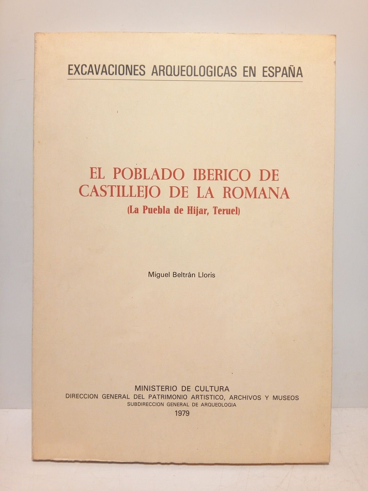Madrid: Ministerio de Cultura, 1979.- 135 p.: láminas e ilustraciones; 4º.- (Excavaciones Arqueológicas en España. 103).* Libro muy agotado en el mercado. ARTE ANTIGUO Y ARQUEOLOGÍA