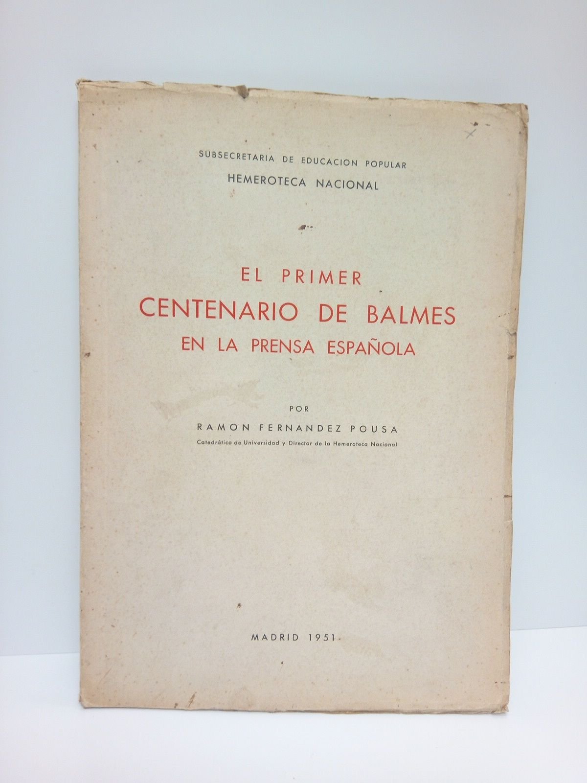 Madrid: Hemeroteca Nacional, 1951.- 124 p., [1 h.]; 4º (24,5 x 17,4 cm).- Interesante reseña bibliográfica de todos los artículos sobre Balmes aparecidos en los periódicos españoles.* Las cubiertas ligeramente ajadas. Por lo demás perfecto. BIBLIOGRAFÍA Y DOCUMENTACIÓN ESPAÑOLAS