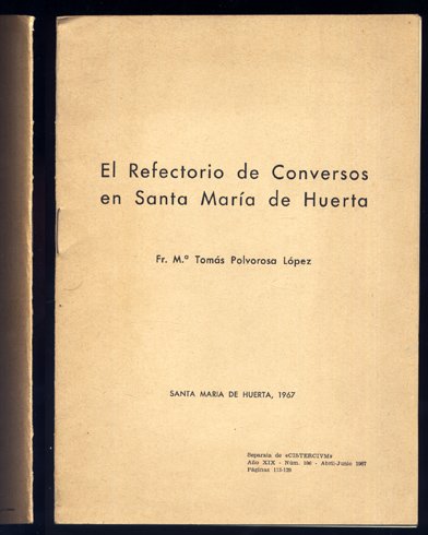 Santa maría de Huerta, 1967 (Separata de "Cistercium"). 4to.; 1 h., 16 pp. Cubiertas originales.