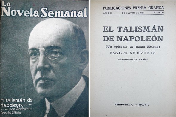 Madrid, La Novela Semanal, 1922. 8vo.; 59 pp., con ilustraciones de Ricardo Marín. Cubiertas originales.
