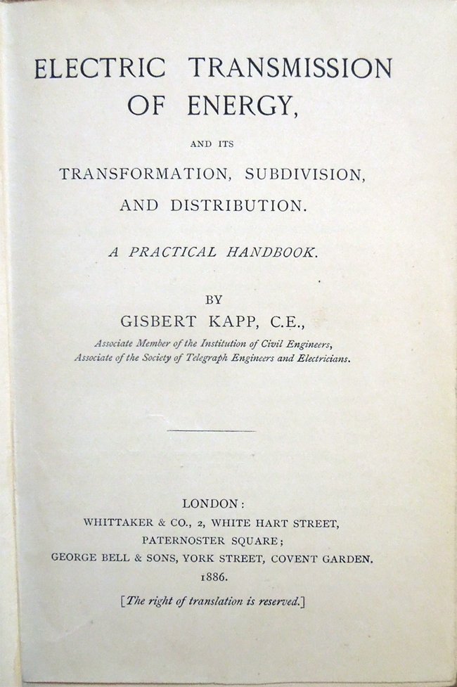Electric Transmission of Energy, and its Transformation, Subdivision and Distribution. A Practical Handbook by Gisbert Kapp, C. E., Associate Member of the Institution of Civil Engineers .