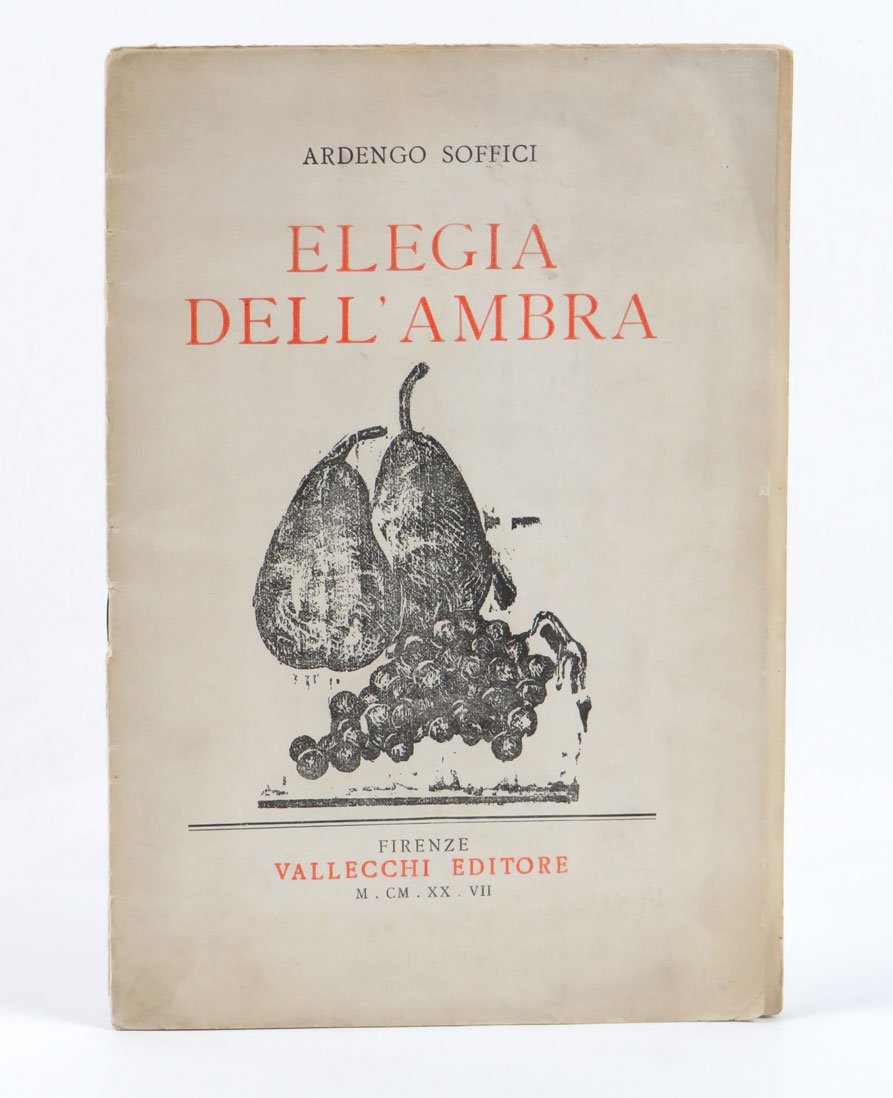 LIBROSeconda edizione.Esemplare n. 55/500, in ottime condizioni (normale lieve brunitura alla copertina, con lievissime fioriture alla quarta di copertina).Dopo l’edizione originale su carta grande e di pregio, in tiratura limitata (solo trecentocinquanta esemplari numerati), nello stesso anno Vallecchi procura quest’edizione commerciale, stampata su carta comune, che riproduce esattamente, ma in formato minore, il libro d’artista di Soffici. Tra le piccole varianti, la più consistente riguarda l’inversione delle immagini tra copertina e frontespizio, con la natura morta di frutta che qui sta in copertina e il vaso di fiori al frontespizio. La tiratura di questa seconda edizione fu comunque limitata a 500 esemplari numerati, oltre a una serie speciale di 100 esemplari fuori commercio non numerati ma pregiati dall’autografo dell’artista al colophon.