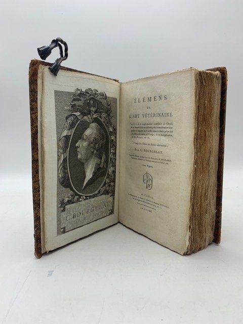 In 8 (cm 14 x 21,5), pp. 580 (le prime 16 pp. numerate in romani) con 1 tavola all'antiporta incisa all'acquaforte con ritratto dell'Autore, 1 tavola finale piu' volte ripiegata con figure incise raffiguranti parti anatomiche del cavallo (alcuni timbri con lettere al verso della tavola). Legatura ottocentesca in mezza pelle. Quinta edizione di questo trattato di veterinaria e d'ippologia uscito in edizione originale nel 1766 e piu' volte ristampato. Questa edizione comprende le note di J. B. Huzard.