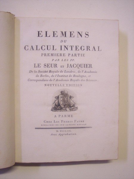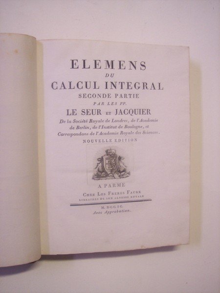 Elemens du calcul integral par les PP. Le Seur et Jacquier.Premier partie (- seconde). Nouvelle edition. 2 voll.