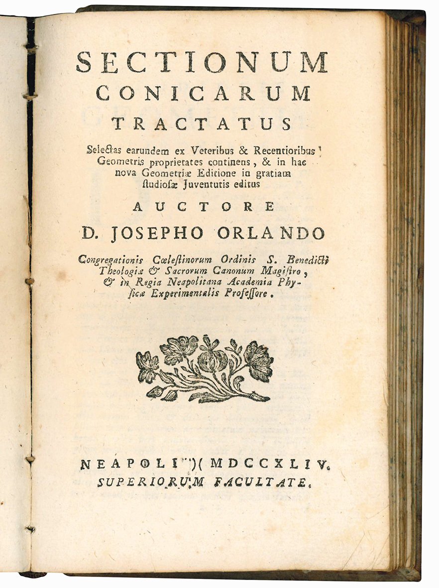 (Insieme a:) ORLANDI, Giuseppe (1712-1786). Sectionum conicarum tractatus selectas earumdem ex veteribus & recentioribus geometris proprietates continens, & in hac nova geometriae editione in gratiam studiosae juventutis editus ... Neapoli: 1744.