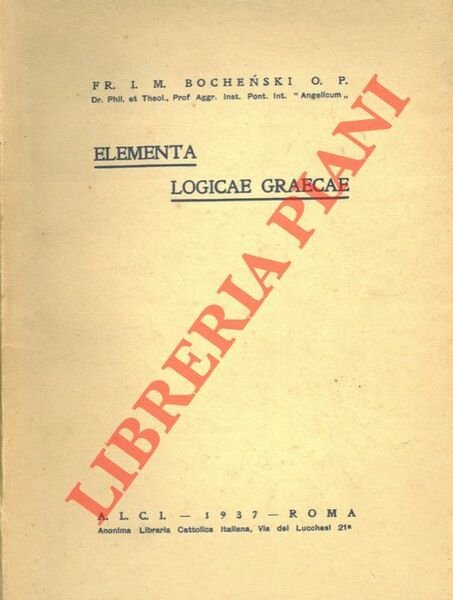 Roma, Anonima Libraria Cattolica Italiana, 1937, 8vo (cm. 22 x 16) brossura originale, pp. 122 con testi greco e latino a fronte.