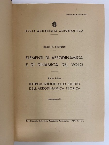ELEMENTI DI AERONAUTICA E DI DINAMICA DEL VOLO - PRIMA PARTE - INTRODUZIONE ALLO STUDIO DELL'AERODINAMICA TEORICA