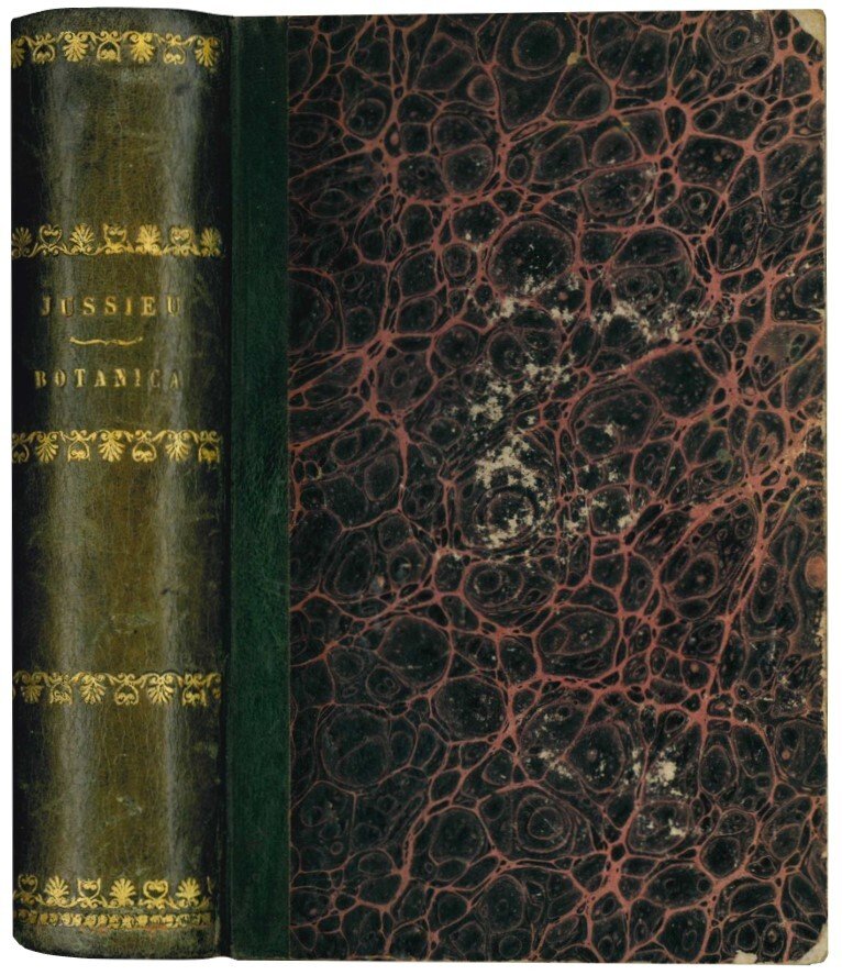 Mm. 178x113. Pp. XXXII, 750. Con numerose illustrazioni in nero nel testo. C. lievemente brunita. Rilegato in mezza pelle coevo con titolo inciso in oro al dorso e tagli spruzzati in blu. Piatti e punte lievemente abrasi. Esemplare molto ben conservato. Prima edizione italiana di quest'opera di Adriano Di Jussieu, professore di Botanica al Museo di Storia Naturale Membro dell'Istituto, della Facoltà delle Scienze di Parigi ecc.