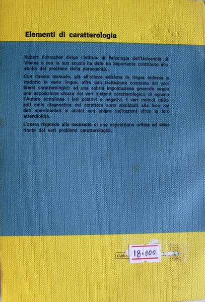 Il professor Hubert Rohracher è stato direttore dell’Istituto di psicologia dell'Università di Vienna, e con questo manuale offre una trattazione completa dei problemi caratterologici, sottolineando per ognuno di essi gli aspetti positivi e negativi.