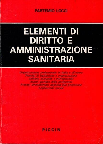 "Elementi di diritto e amministrazione sanitaria", edizione novembre 1984, pp, 300, formato 15,5 x 21,5.